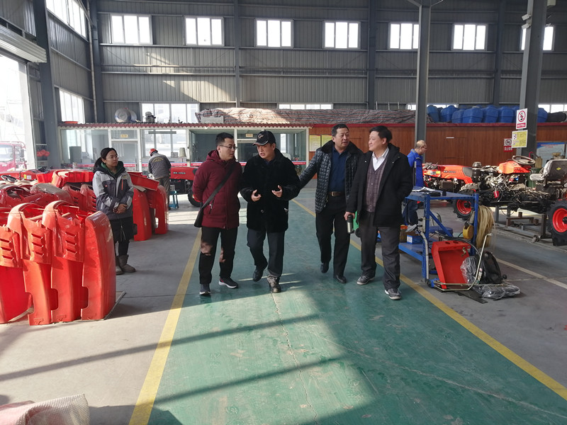 1月3日的上午,河北省石家莊市農業機械化推廣站站長劉虹亞和孫主任、河北省農業機械化推廣站馮佐龍科長、晉州市興華農機龐總一行蒞臨河北保東農業機械有限公司(以下簡稱保東公司),參觀保東公司的果園機械化成果展示廳、現代化廠房,考察果園機械的制造、生產情況,重點了解果園低矮多功能管理機、果園風送式彌霧打藥機、開溝施肥回填一體機在果園機械化的應用情況。