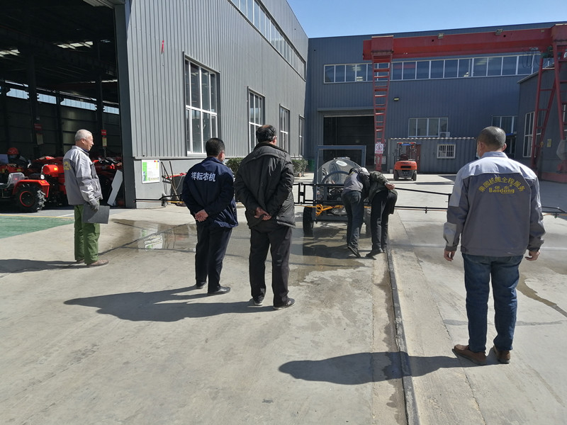 銷售經理跟車間主任一說明情況,就安排楊師傅,開著小四輪掛接上打藥機,來到廠區的組裝車間門口進行實地演示。