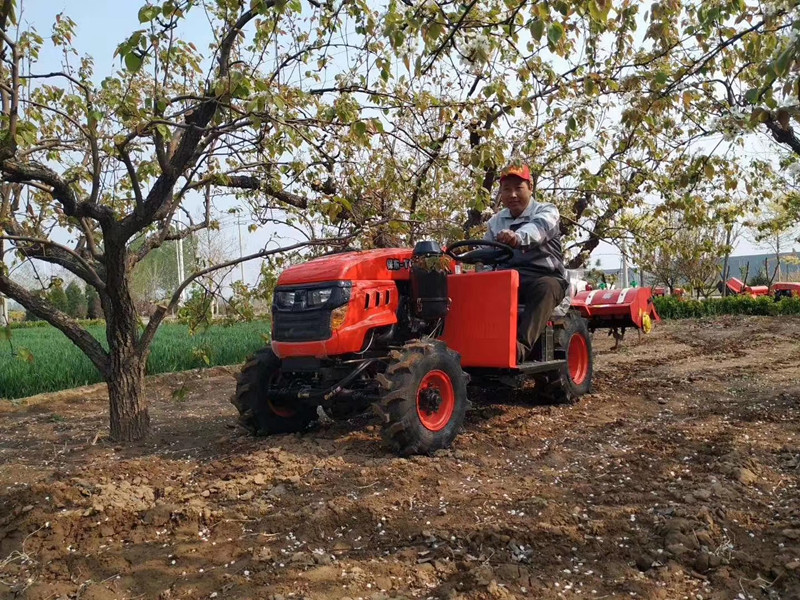 我的機身比較低矮:最高處1米。座位在一邊,機身線條流線大方,機身敦實;適合老式果園、小地塊旋耕、開溝、打藥、鋤草、施肥作業;也可以加裝拖斗,進行果園運輸作業。