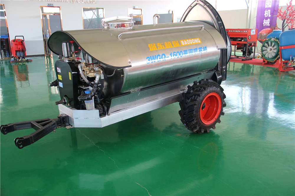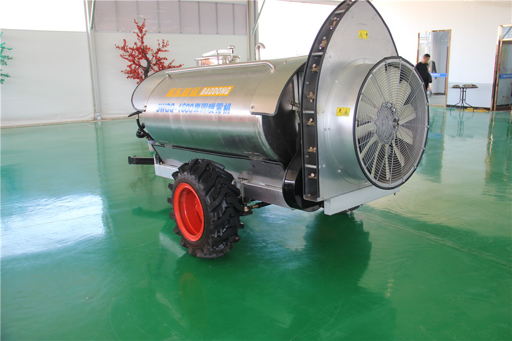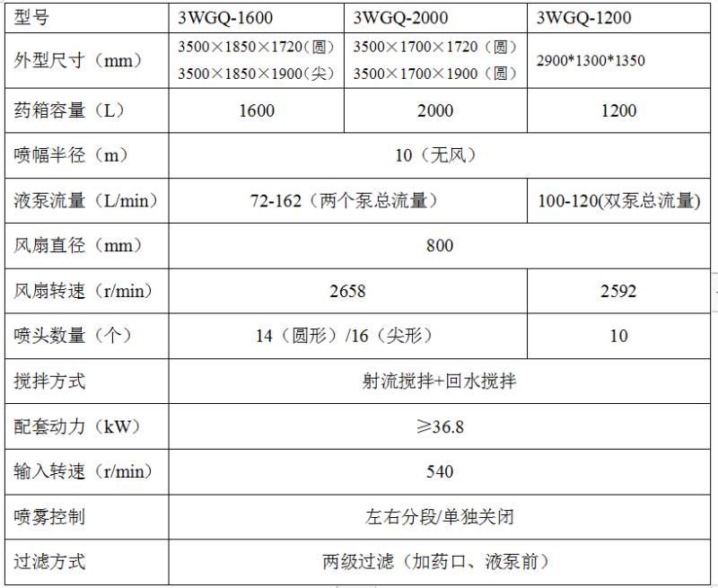 可與40-100馬力拖拉機配套,后牽引式作業;采用高強度耐腐蝕不銹鋼藥箱,采用進口高強銅制噴嘴內置耐磨陶瓷芯片,噴射角度可微調,噴嘴孔徑可快速切換,并配備防滴閥;采用先進射流攪拌器作為藥箱的混藥動力,能夠保證工作中藥液不發生沉淀,對粉劑和低溶解度農藥有較強的適用性;強力風送式結構配以意大利進口大排量隔膜泵、雙速變速箱,噴灑穿透性較強,適合各種種植密度的作業,有效保證葉面和葉背噴灑效果相同。