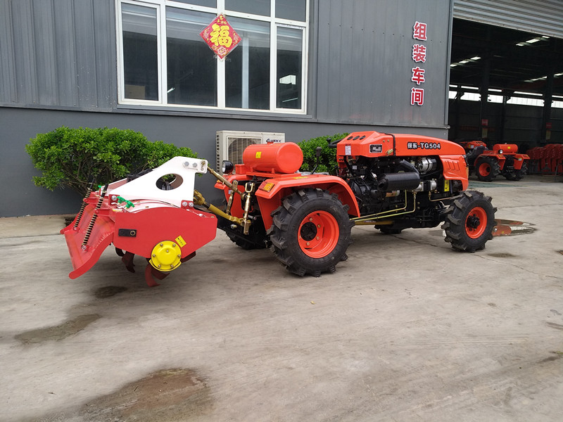 2、機(jī)組在旋耕作業(yè)時(shí)要按正確操作程序操作,正確的操作的順序是:旋耕機(jī)升起狀態(tài)下,結(jié)合動(dòng)力輸出軸,變速箱掛上合適的檔位,柔和地松開(kāi)離合器踏板,同時(shí)慢慢的加油門,緩緩下降旋耕機(jī),直到合適的耕深為止,田間作業(yè)時(shí)必須用手油門控制發(fā)動(dòng)機(jī),使機(jī)組獲得平穩(wěn)、均衡的動(dòng)力。